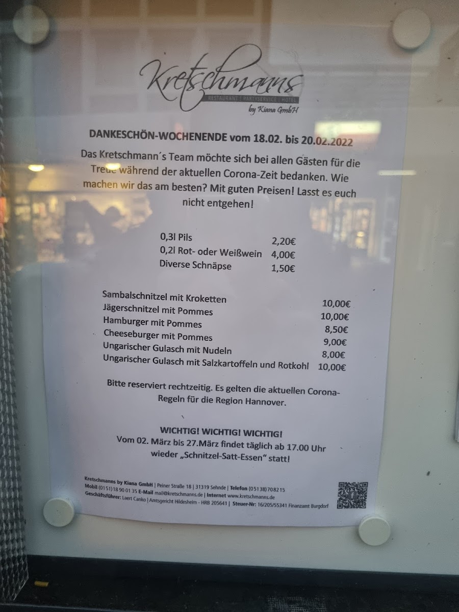 Welcome to Kretschmanns by Kiana GmbH, a delightful gem nestled in Sehnde, Germany. Situated at Peiner Str. 18, this charming establishment offers both a restaurant and hotel, providing a harmonious blend of comfort and culinary excellence. Guests rave about the accommodating owner, Sarah, whose hospitality ensures that every visitor feels right at home.